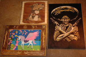 Intarsienarbeiten und Einhornpuzzle.