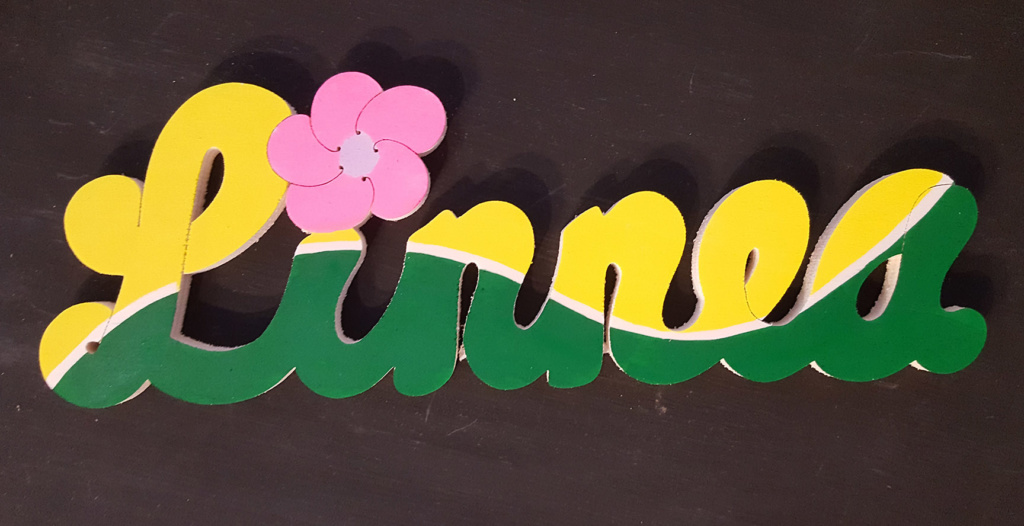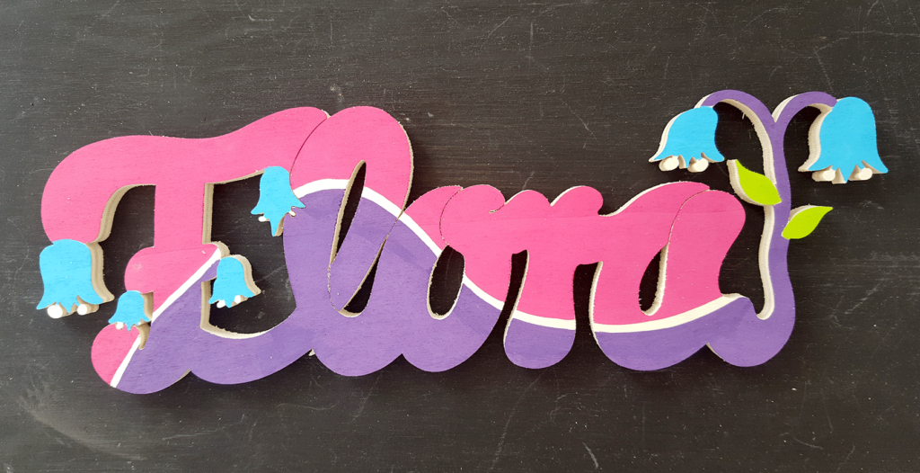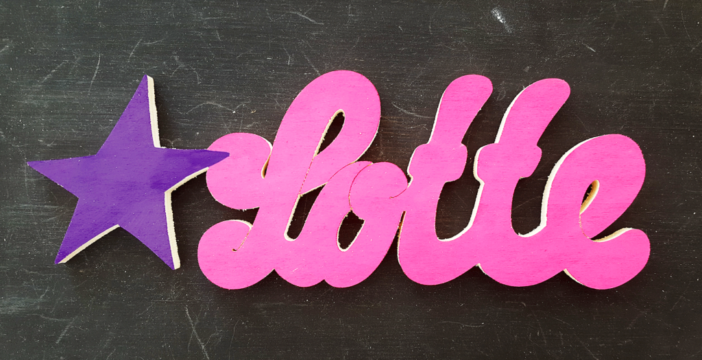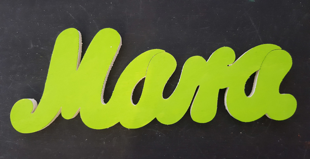 Jeden Name oder jedes Wort sägen wir für 17 Euro. Falls ein i-Punkt vorkommt, bemalen wir diesen gerne in einer anderen Farbe. Unsere Rohlinge sind etwa 30 Zentimeter lang, das bedeutet: Je länger der Schriftzug, desto niedriger die Buchstabenhöhe.